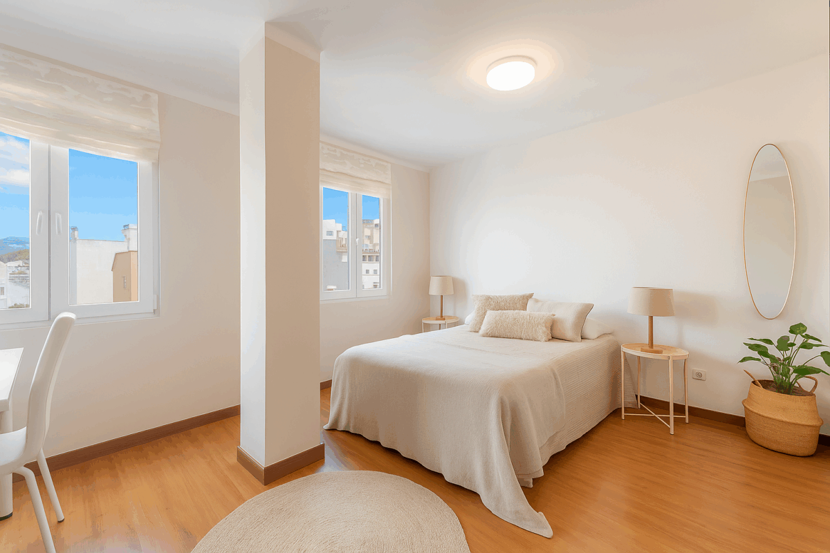 Residents also have access to a communal rooftop terrace with breathtaking 360-degree views over Palma’s skyline. This apartment combines comfort, functionality, and a prime location close to the sea, shops, restaurants, and public transport, making it a rare opportunity in one of Palma’s most desirable residential areas.